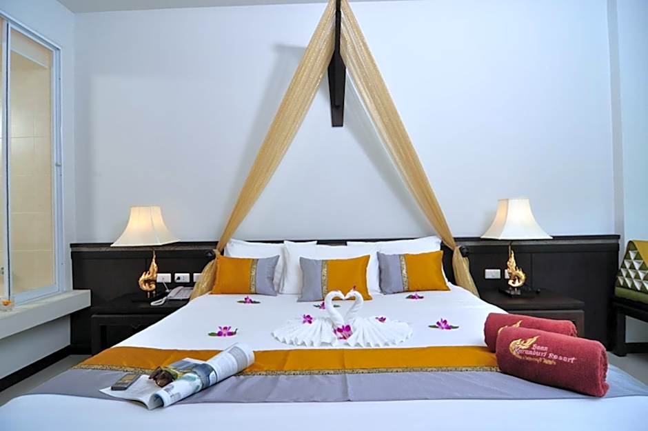 Deluxe is 388 square feet and includes a king-size bed 150-183 width.